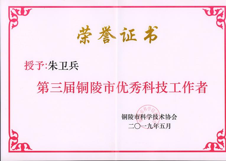 近日,銅陵市科學(xué)技術(shù)協(xié)會(huì)公布了“第三屆銅陵市優(yōu)秀科技工作者”評(píng)選結(jié)果,公司總經(jīng)理朱衛(wèi)兵為公布的30名優(yōu)秀科技工作者之一。